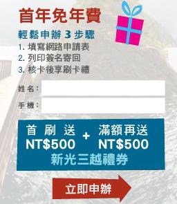 (上圖。好康再加碼,首年免年費,首刷送NT500。)